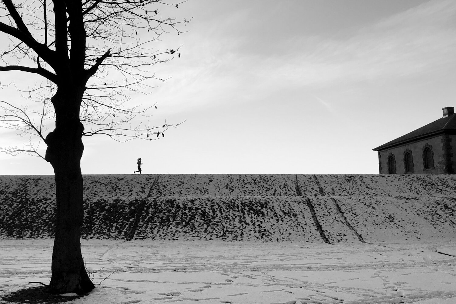 My original plan for my Documentary Class was to capture the Dreamfar High School Marathon (DHSM) team while in training for their 2020 spring marathon. I wanted to catch how teenagers react to adults, train for something incredibly hard, and see how they become more confident in themselves as well as in what they can achieve. What my project transformed into was a visual project around running and how running can be a solitary or social sport enjoyed by all. Being an avid runner, these photos were taken, and now displayed in this series, along the Boston Marathon Course, during road races and while running in marathons myself.